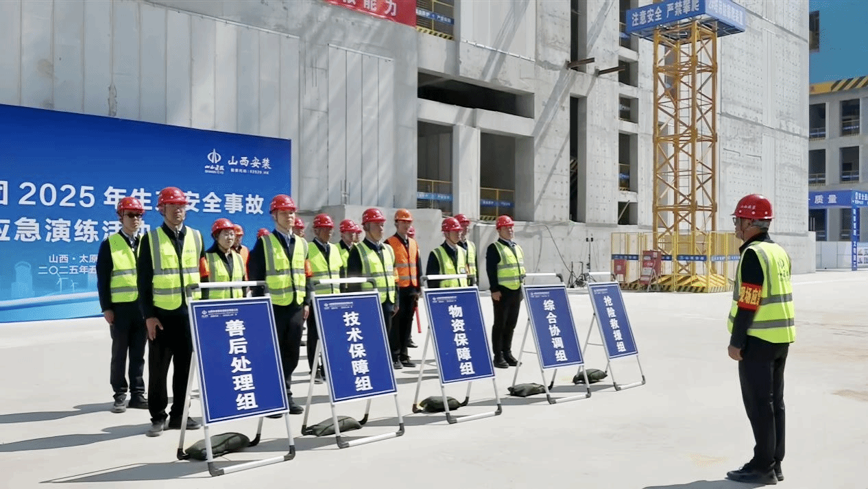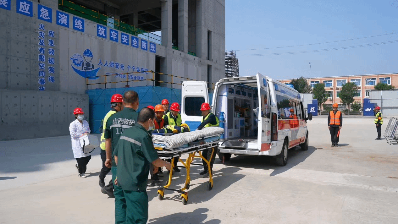 启动仪式后,,,,,在项目现场开展了2025年清静生产事故应急演练运动。。。。。