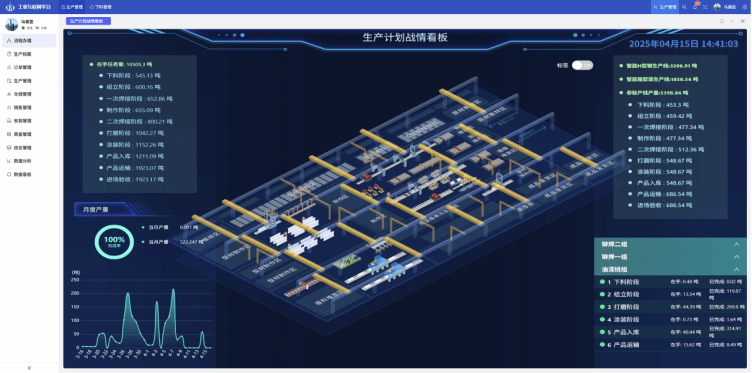 公司通过安排工业互联网云平台,,,,实现了钢结构生产车间的数字化转型。。。。该平台深度整合了ERP(企业资源妄想)、MES(制造执行系统)、PLM(产品生命周期治理)等8大焦点工业软件系统,,,,依托物联网、云盘算等手艺,,,,买通了从设计、供应链治理到生产制造、销售装置的全营业流程,,,,真正实现了IT(信息手艺)与OT(运营手艺)的深度融合。。。。