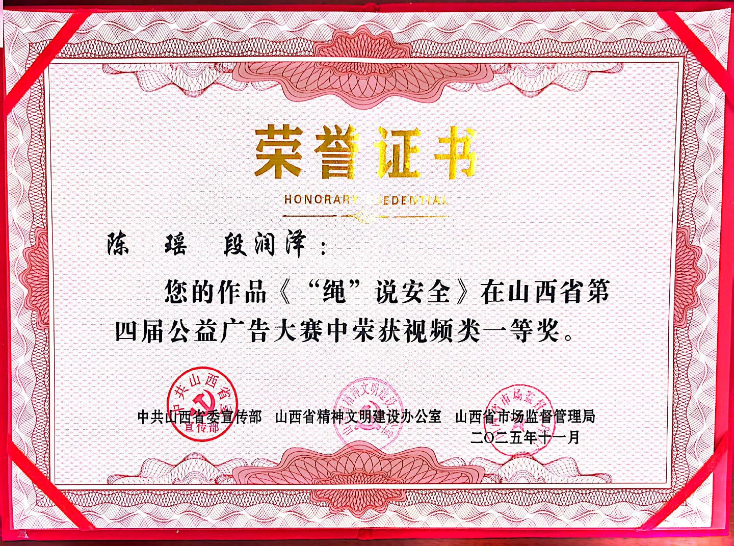 克日,,,,山西省委宣传部、山西省精神文明尊龙凯时办公室、山西省市场监视治理局联合主理的山西省第四届公益广告大赛获奖名单正式宣布。。。。山西建投选送的《“绳”说清静》《匠心·与时光偕行》《共护食安》三个作品划分荣获视频类一等奖、三等奖清静面类优异奖。。。。