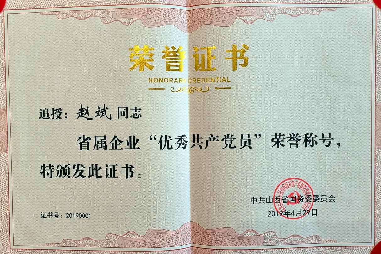 5月17日,,,,追授赵斌同志山西省国资委系统“优异共产党员”颁授仪式在山西建投八建集团举行。。山西省国资委党委主持一样平常事情的副书记(正厅长级)马进,,,,山西建投党委书记、董事长孙波出席。。党委委员、董事、工会主席温刚主持。。