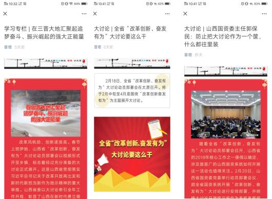 山西建投国际公司4个下层单位、6个党支部接到通知之后迅速响应,,,,通过微信公众号、宣传展板、电子屏、悬挂条幅等方法普遍宣传大讨论运动,,,,回声热烈,,,,效果优异。。