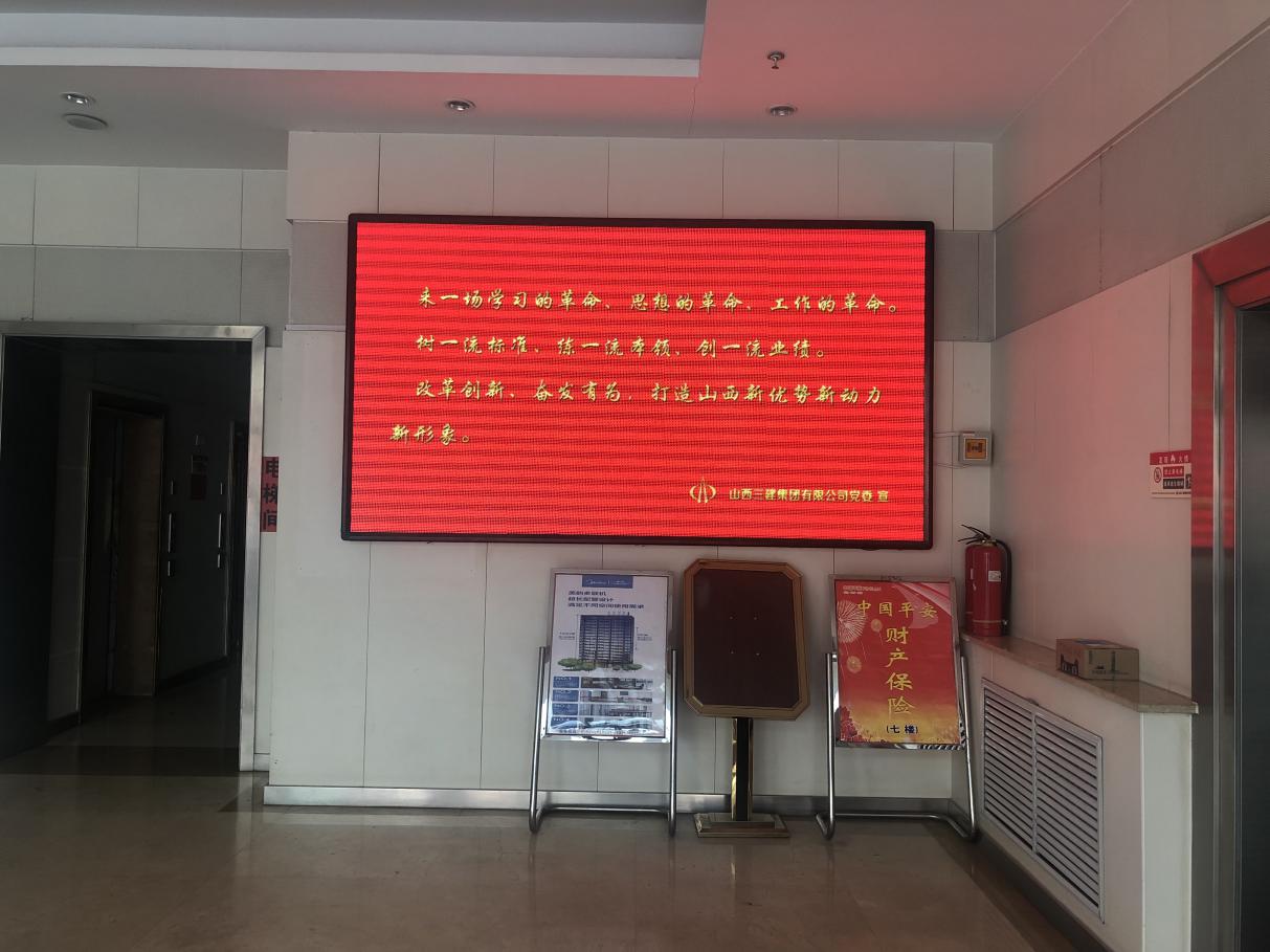 山西建投二建集团做到33个党(总)支部全笼罩,,,,公司机关大厅LED液晶显示屏、王家峰集中办公区现场、桥东街集中办公区也做好刊播张挂,,,,普遍张挂刊播宣传口号160余条。。