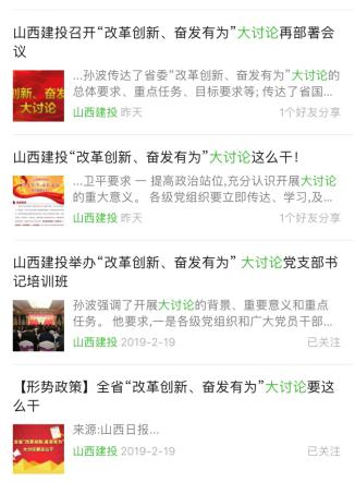 山西建投党委宣传部在集团官方网站上开发了“刷新立异、高昂有为”大讨论专栏,,,,并使用微信公众号、LED大屏、OA办公系统、文件等平台,,,,不中止地对大讨论宣传口号、大讨论的指导头脑、主要使命、要领办法和重点环节等内容举行宣传,,,,扩大宣传规模,,,,强化宣传效应。。