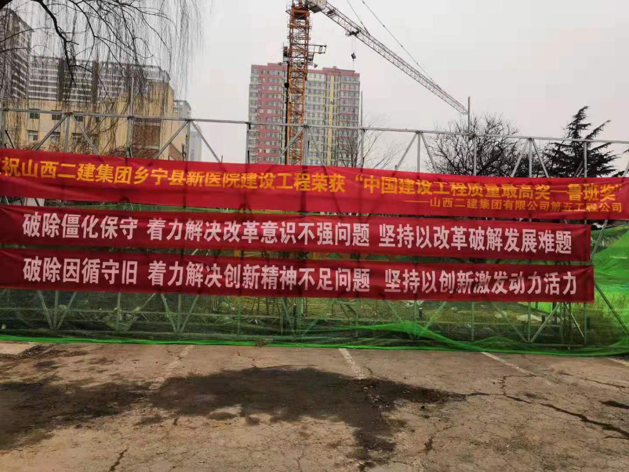 山西建投五建集团张挂条幅71条,,,,18个单位、19个项目部实现全笼罩。。