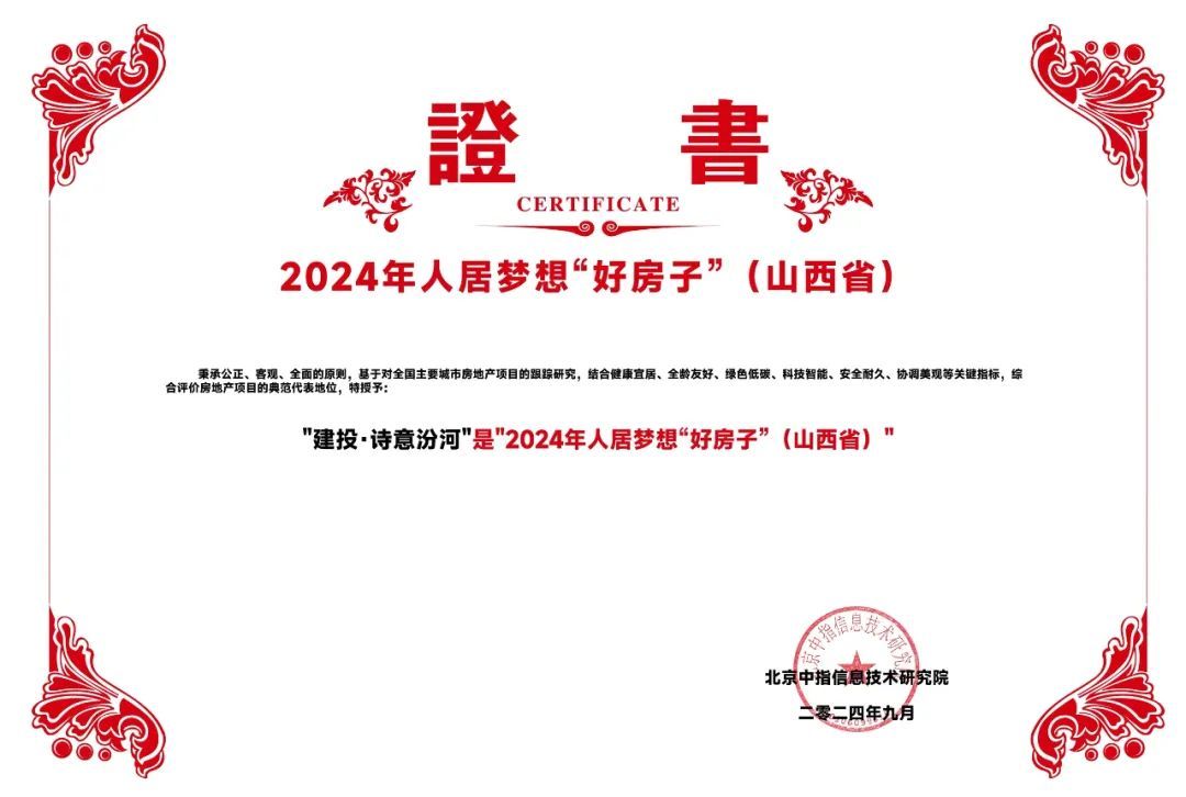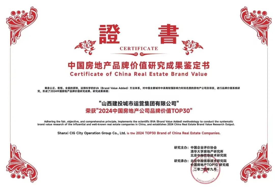 9月13日,,由中国企业评价协会等单位联合承办的“2024中国房地产品牌价值研究效果宣布会”在雄安新区召开,,山西建投集团建投地产荣膺“2024中国房地产公司品牌价值TOP10(国企)”“2024中国房地产公司品牌价值TOP30”,,建投地产打造的建投·誉河院项目荣获“2024房地产项目品牌价值T0P10”声誉,,建投·诗意汾河项目获评“2024年人居梦想‘好屋子’”,,成为高品质人居的规范代表。。。。。