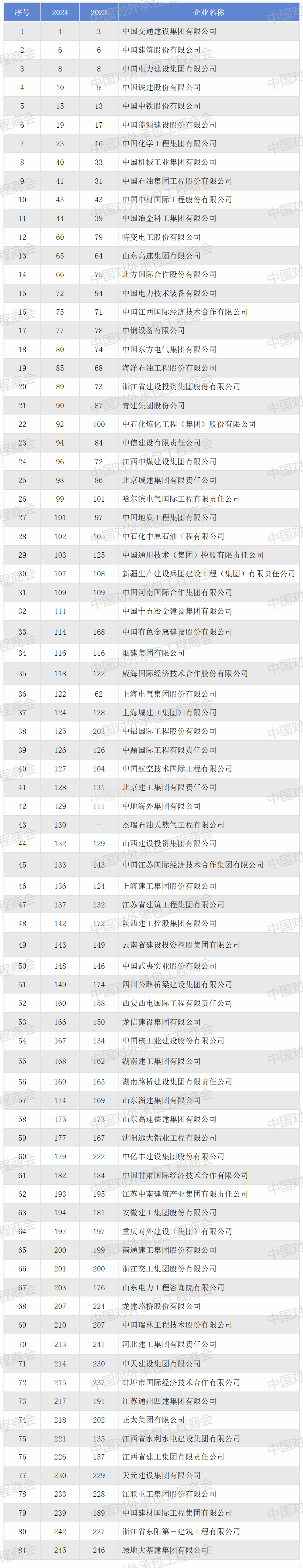 2024年度《美国工程新闻纪录(ENR)》最大250家全球承包商完整榜单