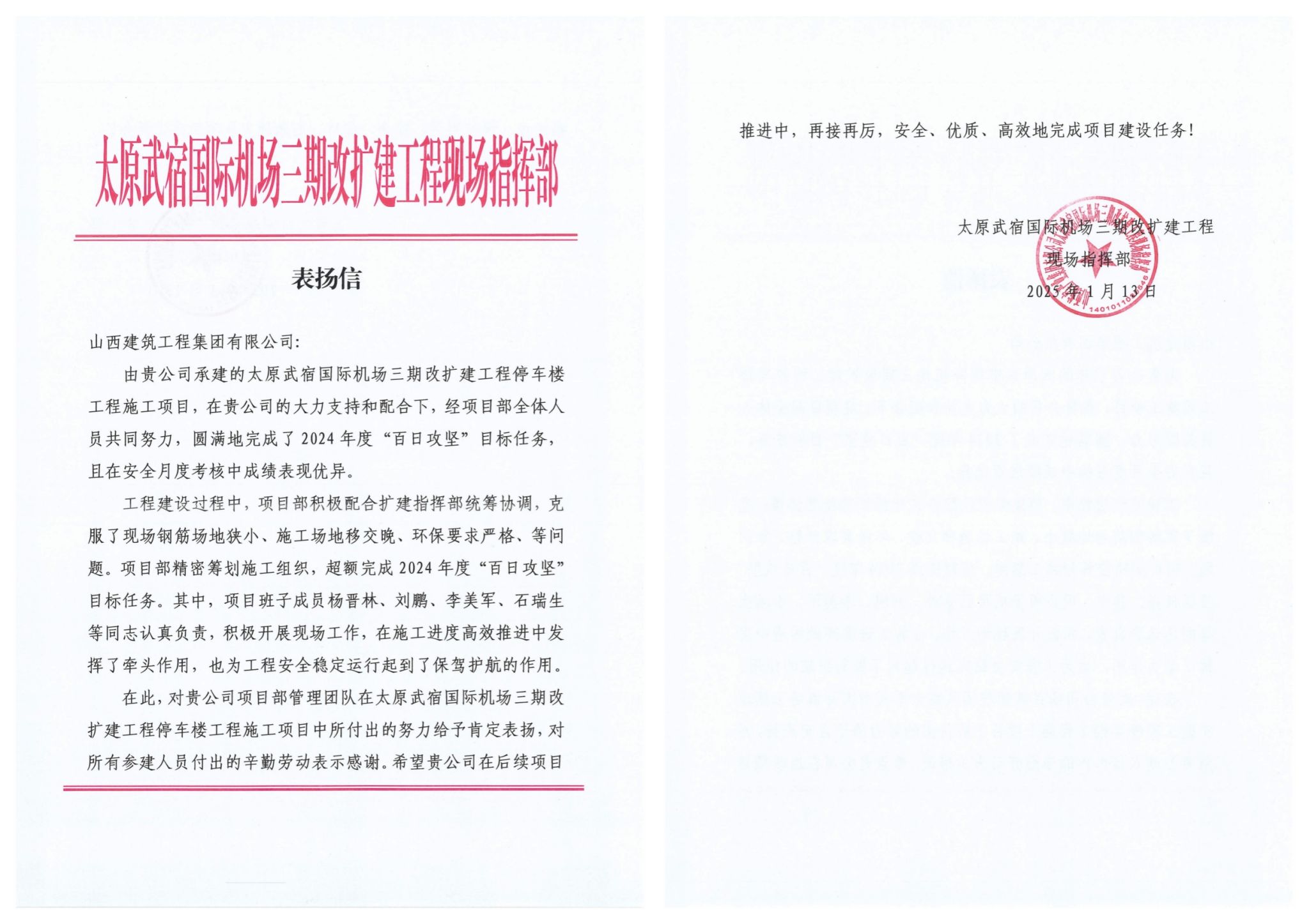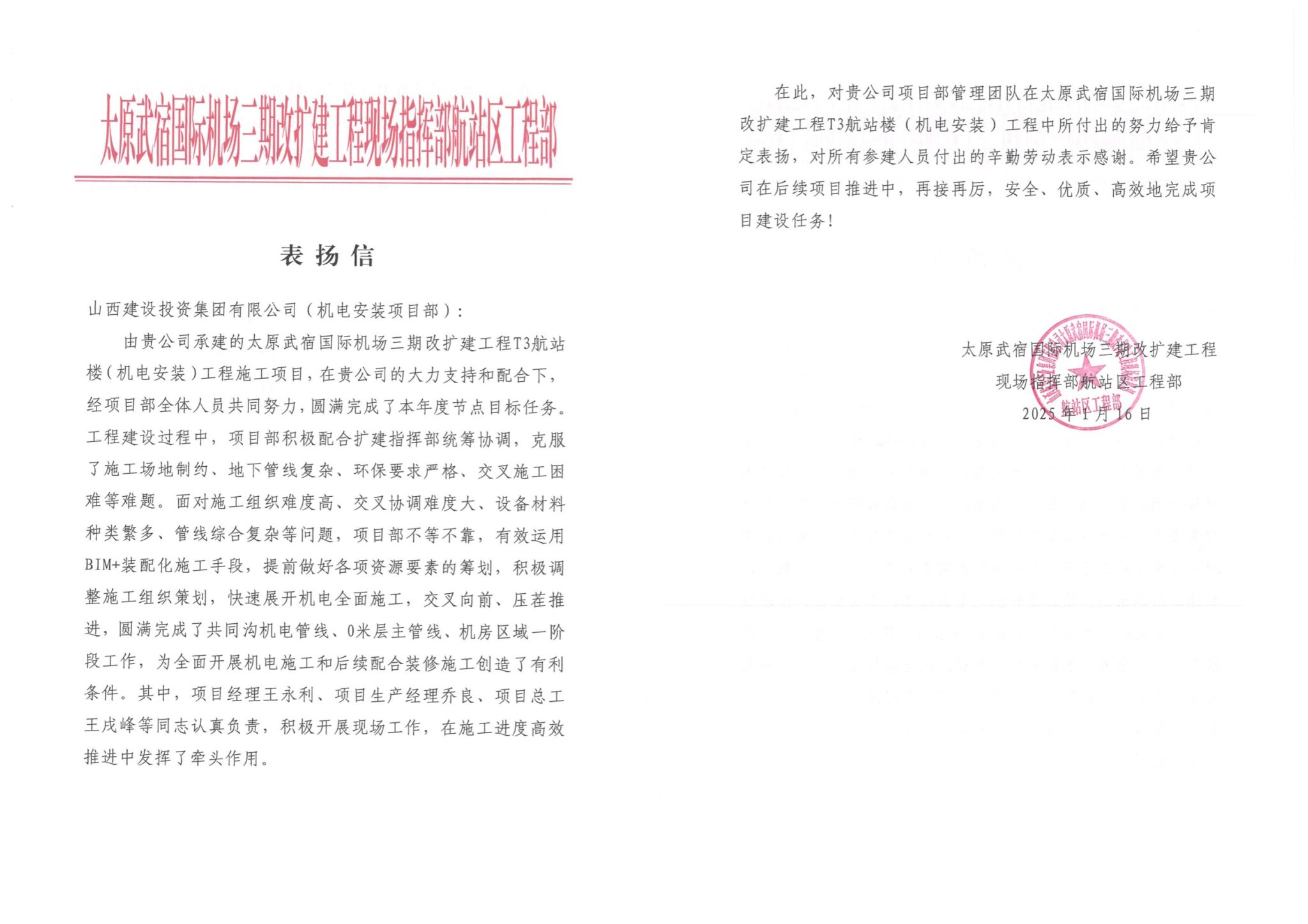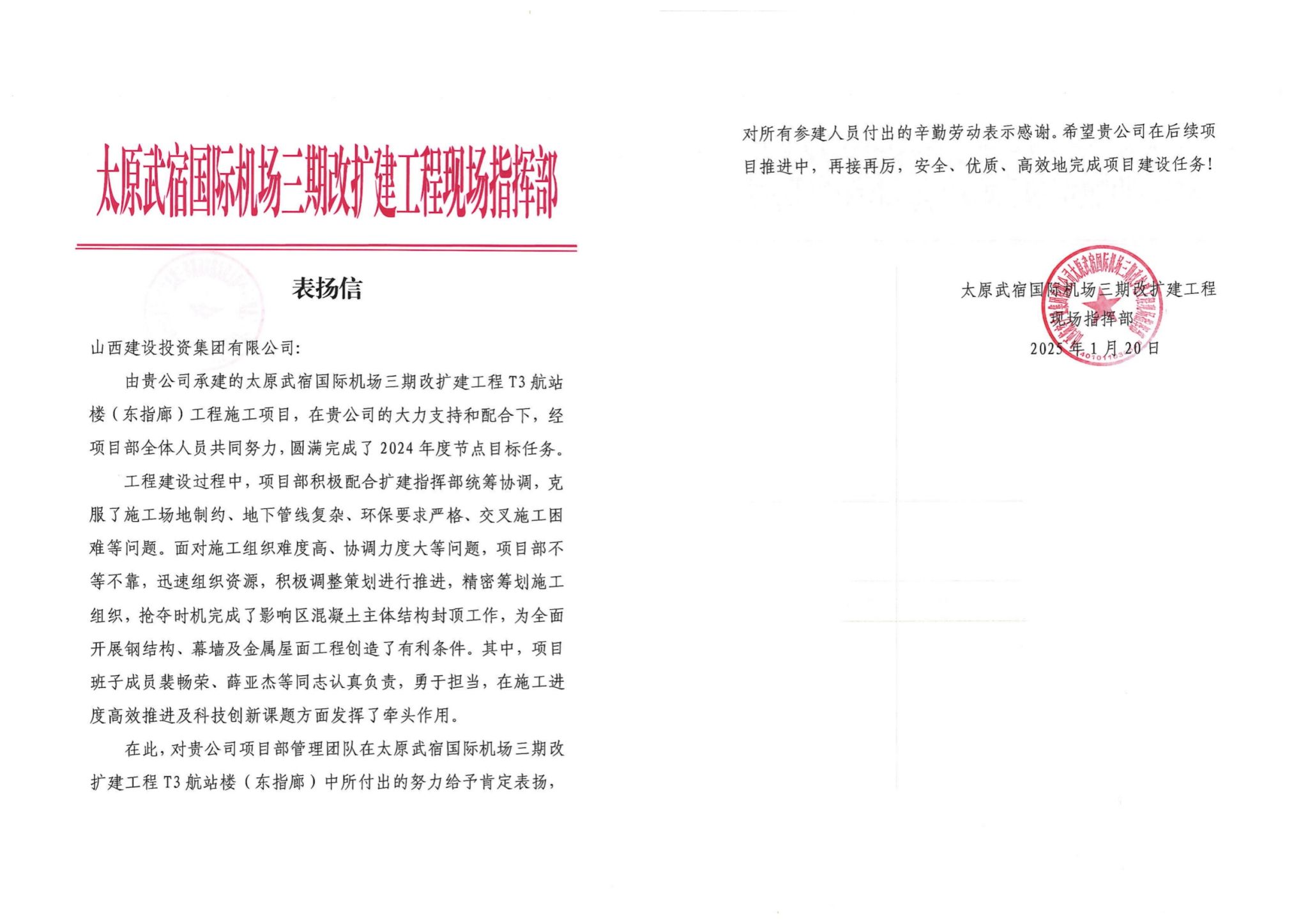 2025ÄêÍ·£¬£¬T3º½Õ¾Â¥£¬£¬×ۺϽ»Í¨ÖÐÐÄ£¬£¬¸ß¼ÜÇÅÏîÄ¿£¬£¬³¡µÀ¹¤³ÌÒ»±ê¶Î£¬£¬×¨ÏîÓªÒµÓ÷¿¡¢±±Çø»úÎñ¼°ÌØÖÖ³µÁ¾Î¬ÐÞÖÐÐÄ£¬£¬ÄÏÇø»úÎñ¼°¹«Îñ»úÂ¥µÈÏîÄ¿µÄÊ©¹¤µ¥Î»¾ùÊÕµ½×ðÁú¿­Ê±·½µÄ±íÑïÐÅ ¡£¡£ÐÅÖжԸ÷µ¥Î»ÔÚÏîÄ¿×ðÁú¿­Ê±ÖÐÕ¹ÏÖ³öµÄ¼ÌÐø¾«Éñ¡¢×¨ÒµÄÜÁ¦ºÍ¸ßЧִÐÐÁ¦¸øÓèÒ»¶¨£¬£¬²¢ÔÞÑïÏîÄ¿×ðÁú¿­Ê±ÕßÃÇÔÚÖØ´óÇéÐÎÏÂÆð¾¢ÅäºÏÖ¸»Ó²¿Í³³ïЭµ÷£¬£¬Õ½Ê¤ÖØÖØÄÑÌ⣬£¬Ñ¹²çÍÆ½øÏîÄ¿×ðÁú¿­Ê±£¬£¬ÌáǰʵÏÖÂÄԼĿµÄµÄ¾´Òµ¾«Éñ ¡£¡£