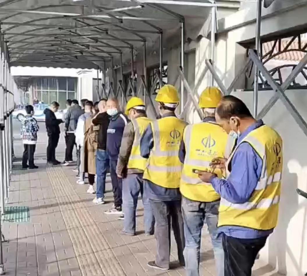 项目部入口处设立疫情防控岗,,安排职员天天24小时值班,,对所有收支职员严酷落实测温挂号和三码联查,,做好排查挂号事情,,严酷执行防疫要求,,对公共区域、办公室、职工宿舍、食堂等区域举行逐日消毒。。。。为提高疫情防控事情科学性,,有备无患、精准施策,,项目部凭证外地疫情防控办公室安排,,第一时间、错峰安排所有事情职员和劳务职员工举行核酸检测,,确保不漏一人。。。。同时增强对施工现场职员头脑治理,,使用逐日班前会对作业职员举行岗前清静教育,,同时开展疫情防控知识宣贯,,时刻提醒和指导从业职员提高清静意识、落实防疫步伐,,从头脑惯性上树立小我私家防护的紧迫意识,,形成了“防控不落空,,项目不歇工”的优异时势。。。。