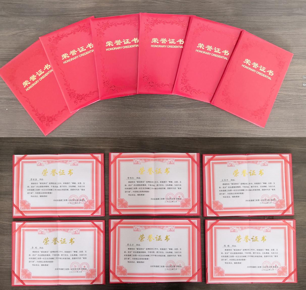 经由几天的艰辛斗争,,尖草坪区疫情获得有用控制,,光社街道建工街第一社区对公司支持抗击疫情事情给予充分一定,,并为自愿者揭晓了声誉证书。。。。。