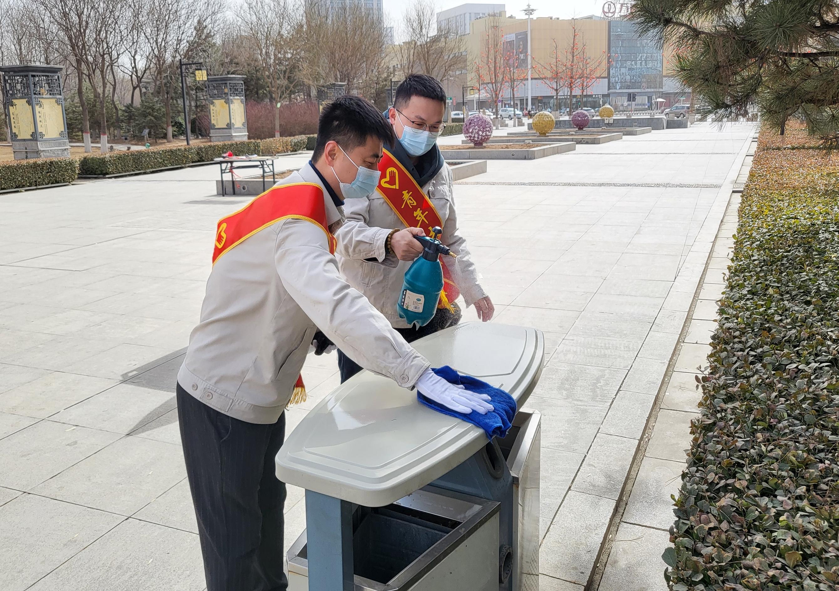 3月4日, ,,,公司20余名自愿者来到了榆次区晋商公园, ,,,重温了雷锋日志精选片断。。。。。随后, ,,,在做好自身防护的条件下, ,,,在公园内捡拾垃圾并给垃圾桶、长椅等举行了消毒。。。。。