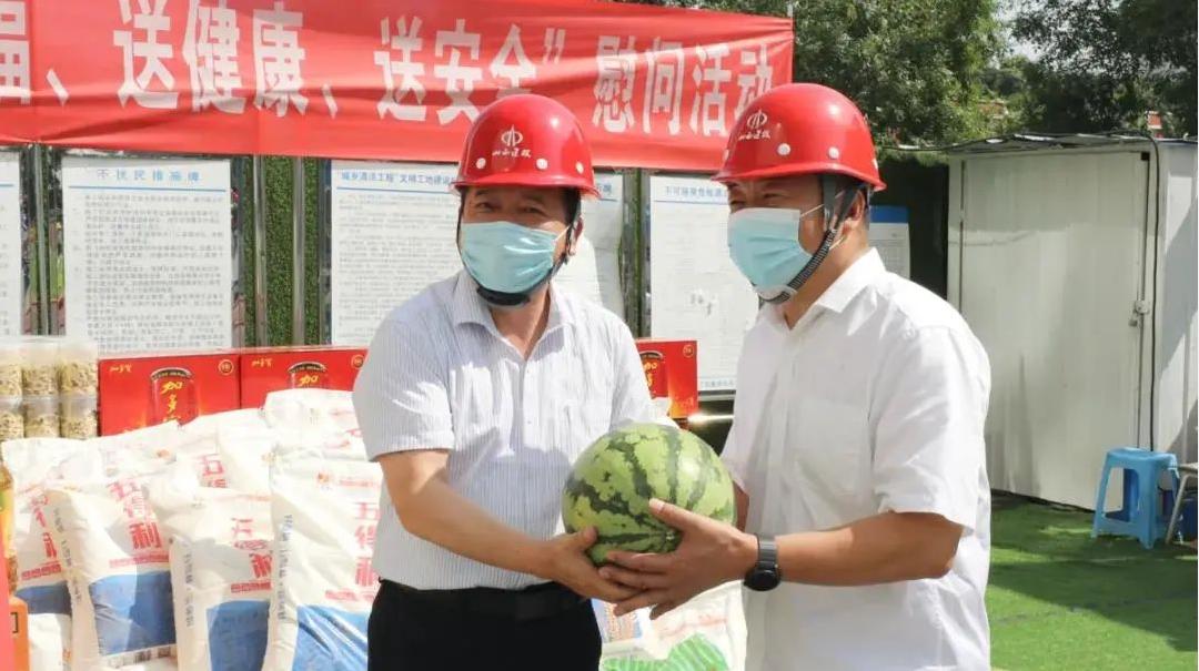 克日,,山西省修建业工会联合会常务副主席白永和一行赴公司学府智能停车楼及配套修建特许谋划项目,,开展“学党史、送清凉、送祝福、送康健、送清静”慰问运动,,为一线职工和工友们送去了学习党史的书籍以及饮料、绿豆、西瓜等慰问品。。