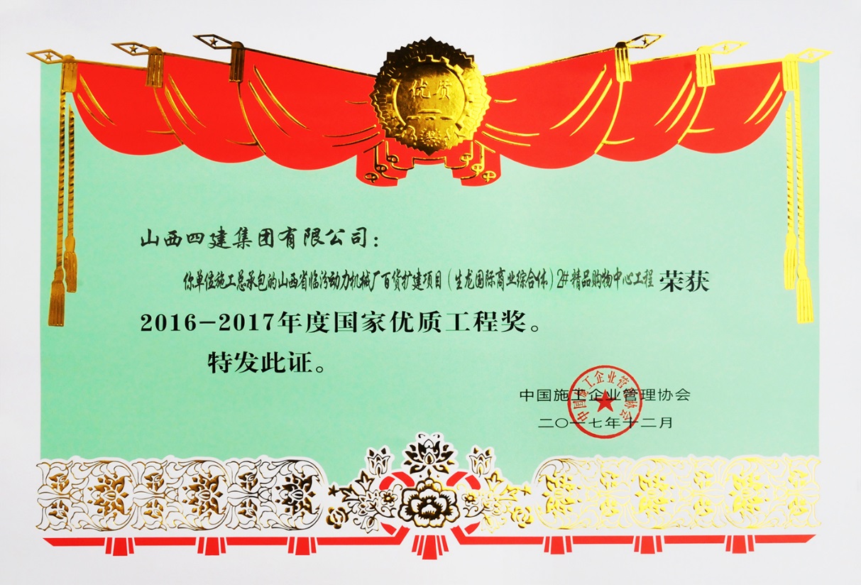 克日,,,,公司申报的效果“大型商业综合体机电装置工程成套施工手艺”荣获2018-2019年度中国装置协会科学手艺前进奖三等奖,,,,这是公司首次获得此类奖项。。。