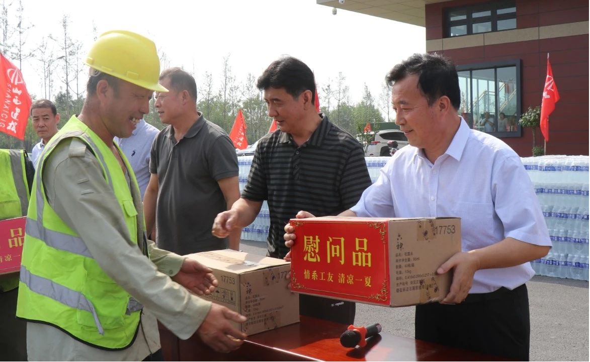 8月11日,,,,,晋中市副市长郝向明到山西职教港项目,,,,,开展项目进度调研暨晋中市总工会“心系重点工程、情系一线职工、助力转型生长”慰问运动。 。。山西建投工会主席、晋中指挥部总指挥温刚出席运动。 。。