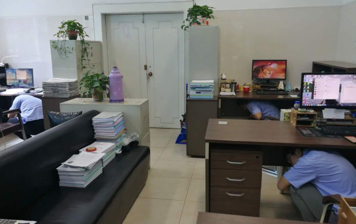 为磨练全体员工在突发地动时真实的避险逃生能力,,,公司决议在各办公区正常事情的状态下举行。。。。随着第一声警报的响起,,,公司五个办公区的防震减灾应急演练正式拉开序幕。。。。各办公区员工一丝不苟、严正以待,,,所有接纳准确的避险姿势迅速逃避于室内最清静的“活命三角区”,,,举行紧迫避险。。。。
