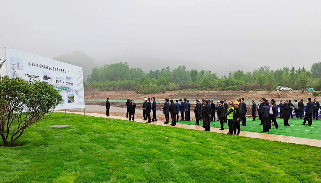 5月8日,,,,运都会委书记丁小强、市委常委及各县委书记一行到公司投资尊龙凯时的夏县白沙河城区段生态蓄水与情形修复工程调研。。。