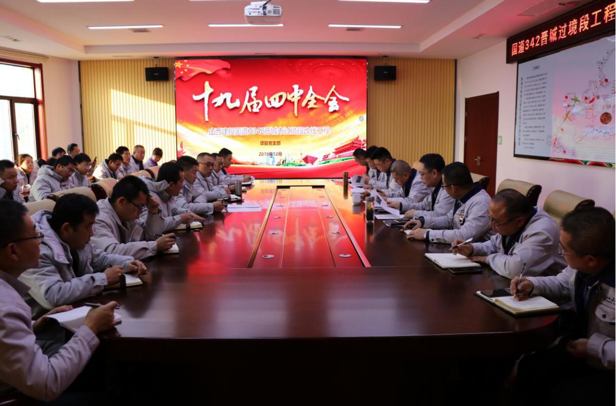 围绕集团党委关于开展学习党的十九届四中全会精神的安排安排,,,圆满实现国道G342晋都会过境段改线工程2020年通车使命,,,张兵要求,,,一要提高政治站位和头脑意识,,,全项目上下要掀起学习宣传贯彻党的十九届四中全会精神的热潮。。。二要深刻体会四中全会的焦点要义,,,凭证集团党委的安排安排,,,细密连系项目现实,,,增强“四个意识”,,,坚定“四个自信”,,,做到“两个维护”。。。三要强化制度意识,,,带动维护制度权威,,,强化能力尊龙凯时。。。四要把学习宣传贯彻十九届四中全会精神作为目今和以后一个时期的重大政治使命,,,以高度的政治责任感和使命感,,,把聚会精神学深悟透,,,把头脑和行动统一到中央决议安排上来,,,不折不扣抓好贯彻落实。。。五要通过“三会一课”制度,,,施展支部学习树模和学习阵地作用,,,切实把学习贯彻党的十九届四中全会精神与推动目今国道G342晋都会区过境段改线工程项目尊龙凯时这一中心使命细密连系起来,,,将四中全会精神用以指导事情实践,,,一直提升事情的能力和水平,,,全心谋划明年岁情,,,明确目的要求、行动,,,圆满完成国道G342晋都会过境段工程通车使命,,,向晋都会人民交上一份知足的答卷。。。