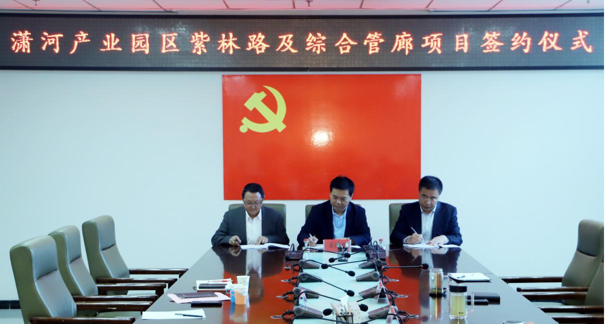 5月13日,,山西建投二建集团(牵头人)与中铁十五局以联合体形式中标的山西转型综改树模区潇河工业园区紫林路蹊径及综合管廊尊龙凯时工程施工条约正式签约,,条约额16.9亿元。。。。潇河工业园区主任许国平,,公司党委书记、董事长祁立柱,,常务副总司理、综改区工程指挥部总指挥胡孟师,,中铁十五局管廊项目项目司理米国韬出席。。。。潇河工业园区副主任马鹏飞主持。。。。
