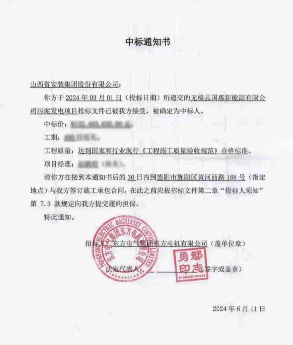 6月11日,,,山西建投装置集团乐成中标无极县国惠新能源有限公司污泥发电项目。。。。。