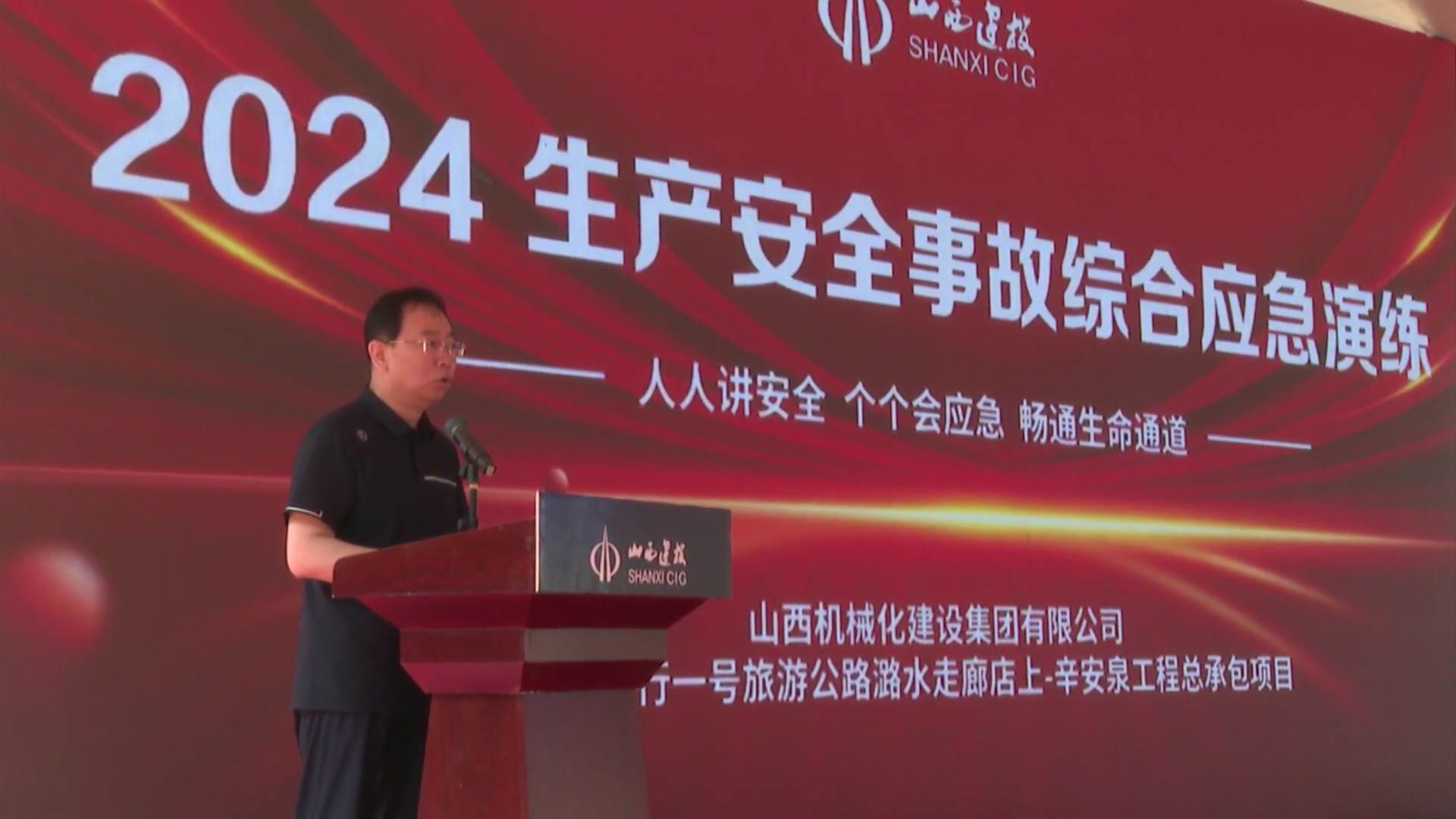 日前,,山西建投契械化集团潞城区太行一号旅游公路项目开展综合应急演练,,安委会向导、相关部分认真人、工程公司总司理、项目全体职员及劳务团队共计70余人加入演练。。。 。