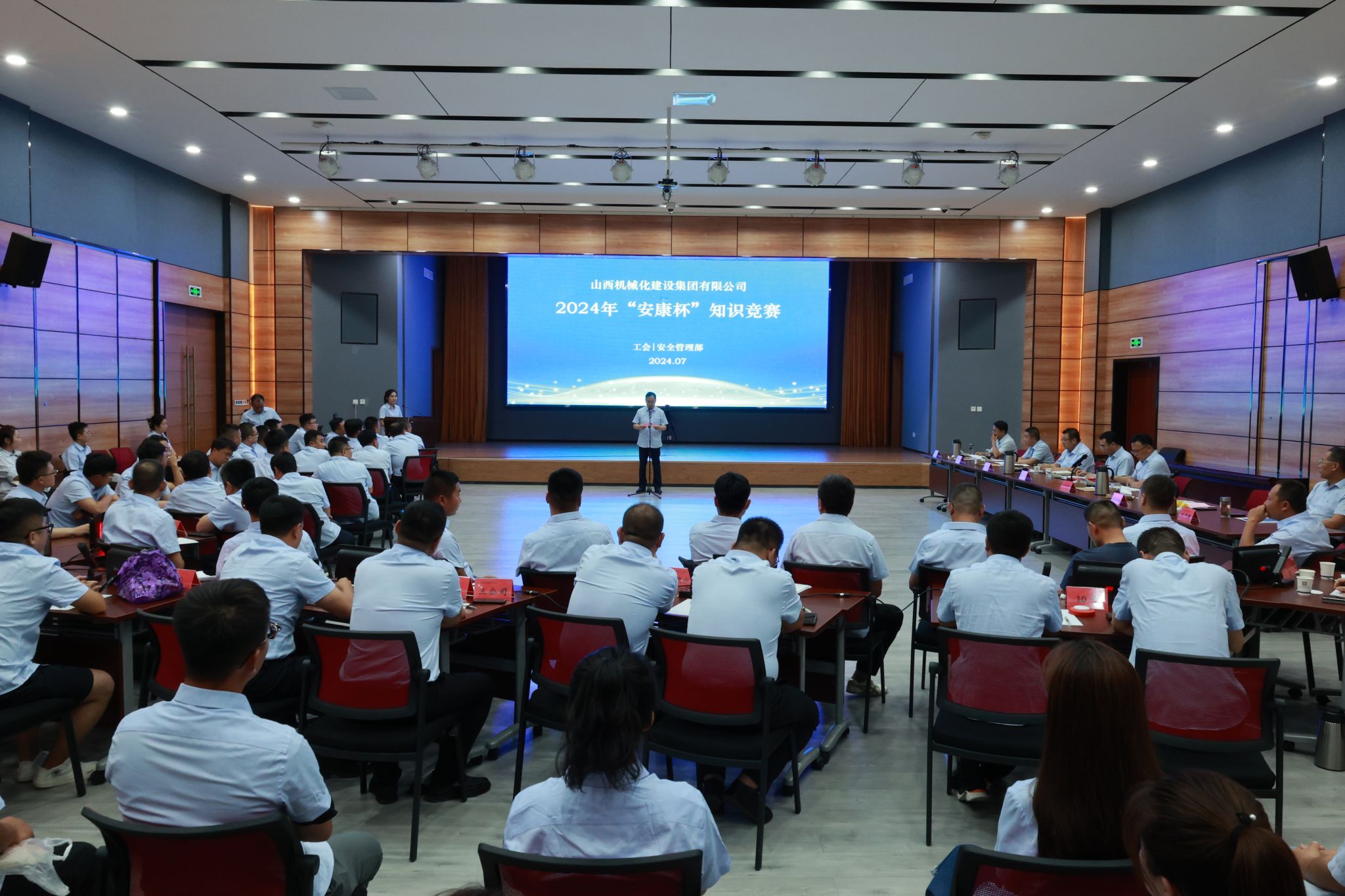 7月14日,, ,,,山西建投契械化集团组织开展2024年“安康杯”知识竞赛。。。。党委专职副书记、副董事长、工会主席成军胜,, ,,,副总司理、清静总监孙建民,, ,,,总工程师杨隆限出席本次运动。。。。