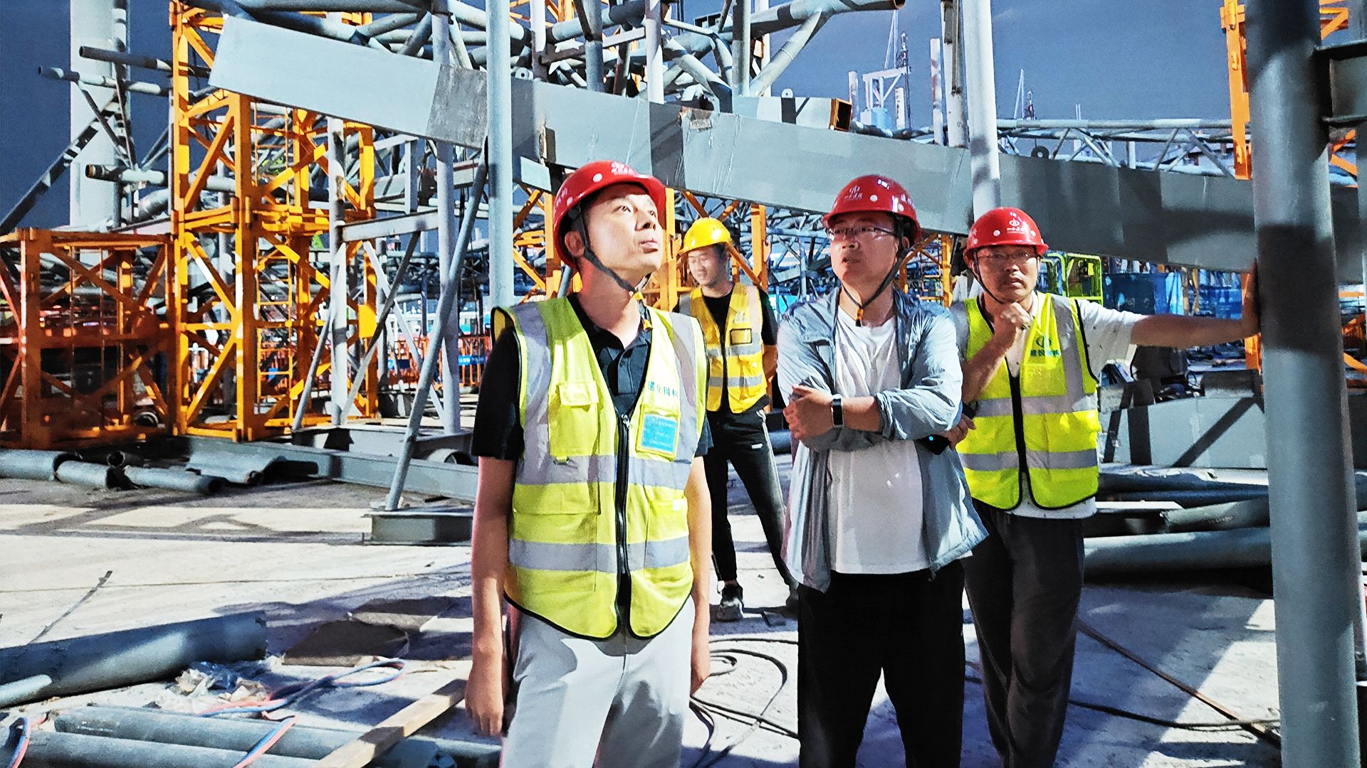 夜幕降临,,白天的喧嚣徐徐褪去,,都会的脚步放缓,,项目尊龙凯时现场依旧如火如荼,,泛起灯火通明、热火朝天的忙碌情形,,工人们头戴清静帽、身穿反光背心,,正主要有序忙碌着,,虽然脸上挂满汗水,,但现场作业一刻也没停下。。。。