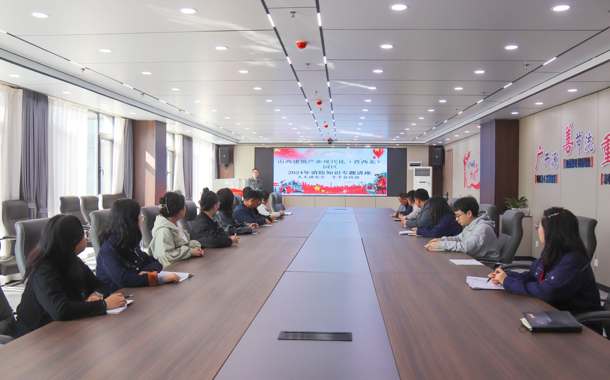 随后,,,,公司约请吕梁市政安消防培训中心教官王攀文,,,,通过PPT演示连系近期火灾案例,,,,深入浅出地解说了常见火灾的预防步伐、初期自救手艺、职员应急疏散逃生技巧及注重事项,,,,并详细叙述消防器材的设置标准和准确使用要领。。。。这不但富厚了职工的理论知识,,,,更为现实操作打下坚实基础。。。。