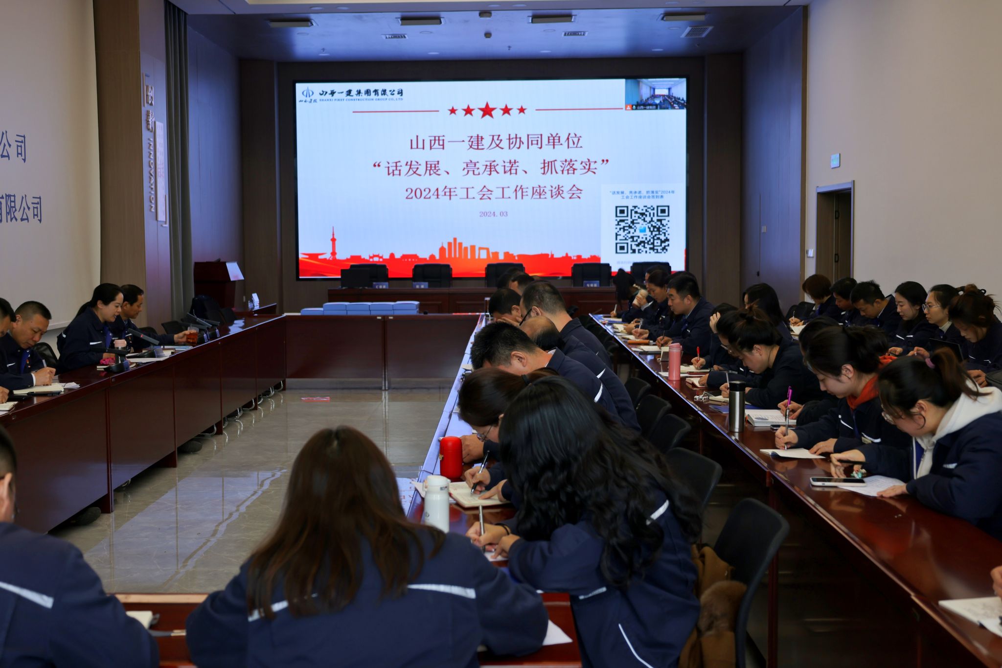3月26日,,,山西建投一建集团工会在本部一层聚会室召开“话生长、亮允许、抓落实”2024年工会事情座谈会。。。工会主席刘晖出席并讲话。。。