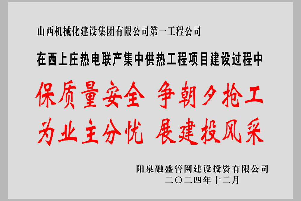克日,,山西建投契械化集团承建的阳泉西上庄低热值煤发电项目热电联产集中供热工程项目受到业主表扬。。。。