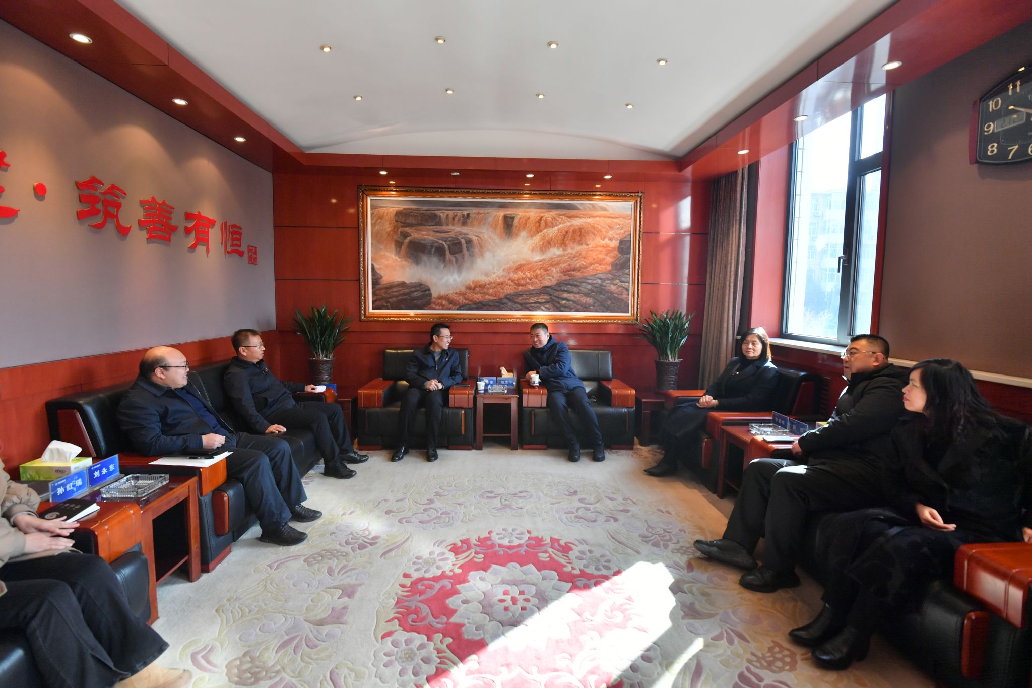 2月17日,,,太原市小店区政协主席张志中到山西建投四建集团入企调研,,,四建集团党委书记、董事长侯湘东热情接待。。。