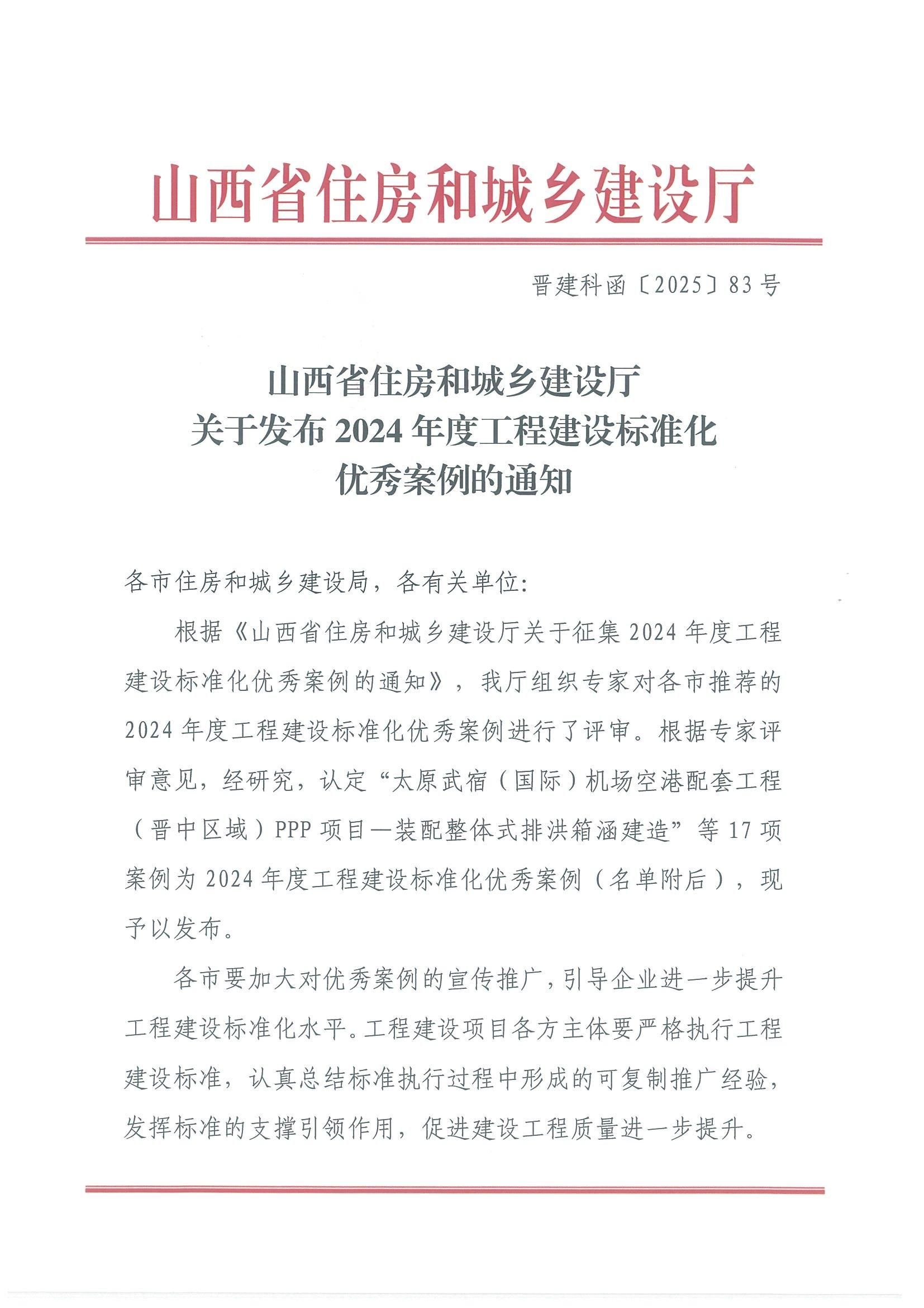 克日,,,山西省住房和城乡尊龙凯时厅宣布17项2024年度工程尊龙凯时标准化优异案例,,,山西建投八建集团报送的案例《翔恒·湖锦江南5#、7#、8#、9#楼及地库工程》入选。。。。