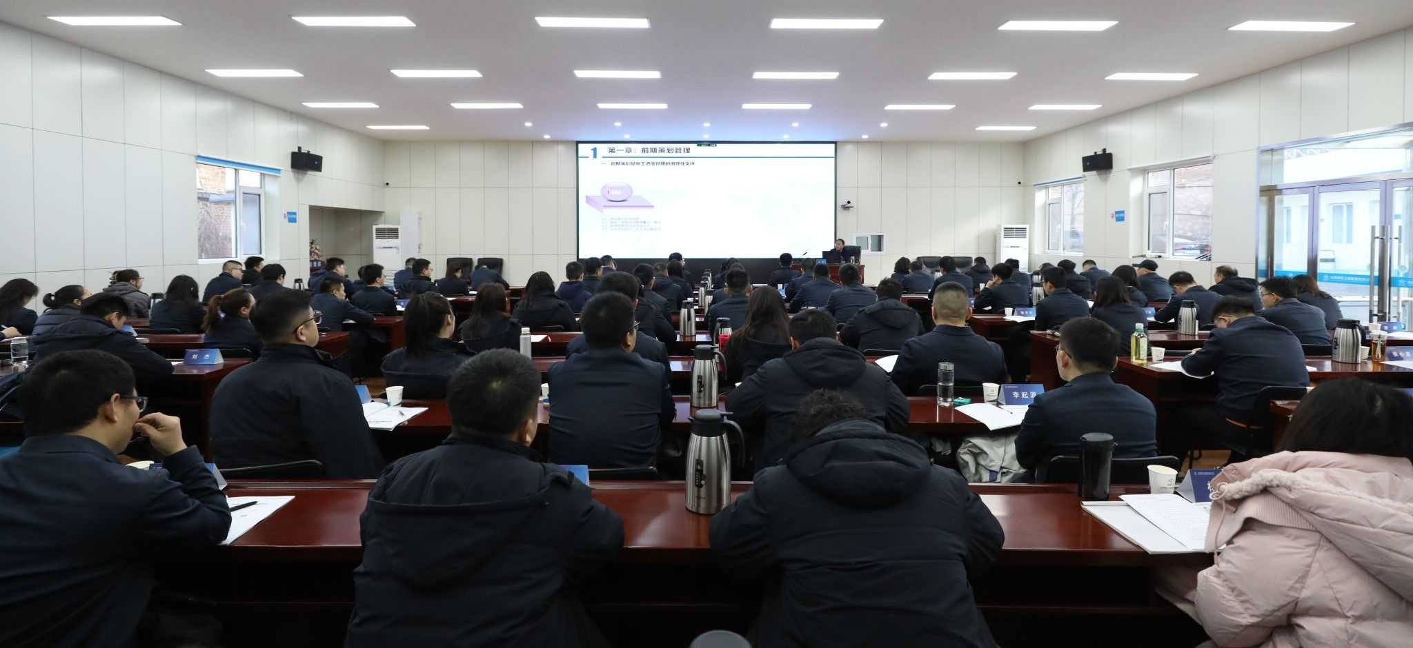 培训特邀中交一公局都会与房建事业部司理,,,中国施工企业治理协会工程尊龙凯时行业培训专家、工程物资装备专家张方授课。。。。张方以《项目施工全历程项目治理专题培训》为题,,,以项目实例为引,,,以前期策划、施工前期准备、施工现场平面安排、项目的本钱、质量及清静治理等六方面为项目全历程治理提出切实可行的指导意见,,,向导参训学员重塑创优观,,,强化全历程质量管控意识,,,优化项目治理链条,,,实现经济效益最大化。。。。