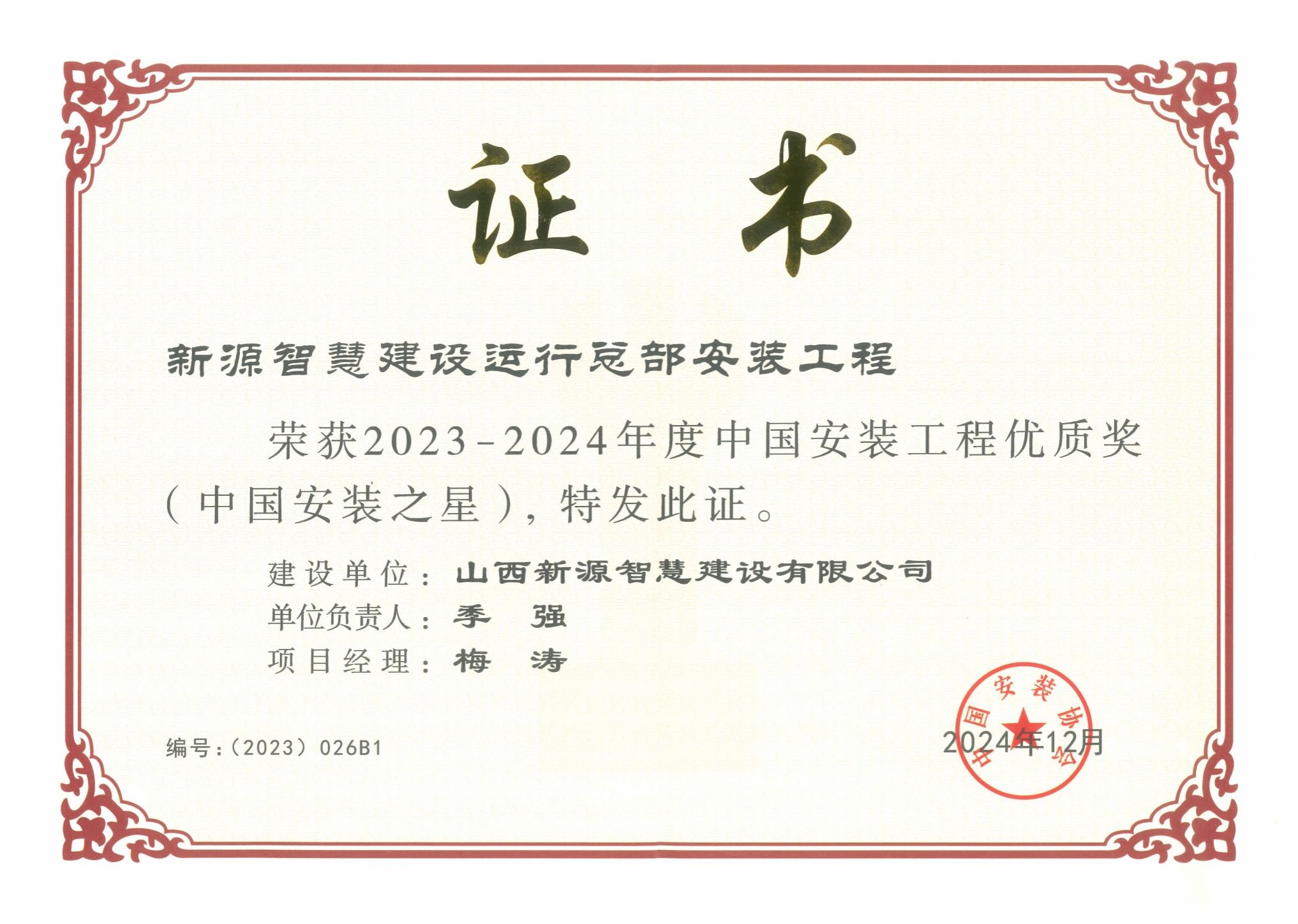 克日,,,由山西建投园区建发集团投资尊龙凯时的新源智慧尊龙凯时运行总部装置工程荣获2023-2024年度“中国装置工程优质奖”,,,成为天下装置工程领域的标杆项目之一。。。。