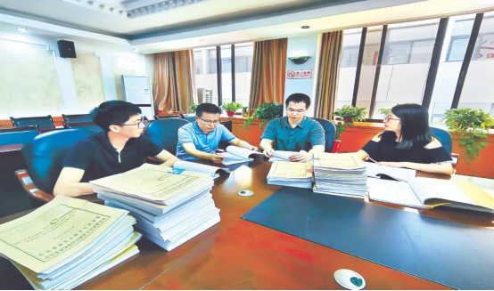 图为九龙坡区纪委监委案件审理室事情职员研究冯水师案定性相关证据。。。。。向导 摄