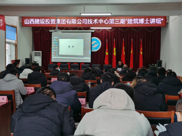 2021年12月29日,,,山西建投集团手艺中心在山西省修建科学研究院有限公司三楼聚会室举行了第三期“修建博士讲坛”。。。。建投集团手艺治理部副部长、手艺中心副主任李英涛,,,建科院党委副书记、副董事长、工会主席赵强,,,以及来自建投集团所属二建、三建、六建、八建、机械化、煤设院、建科院等单位专业手艺职员50余人加入了本次讲座运动。。。。