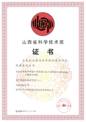 克日,,,,,山西建投契械化集团研究的《机场场道工程高填方施工沉降稳固机理及施工要害手艺研究》项目斩获山西省科学手艺前进三等奖。。。。