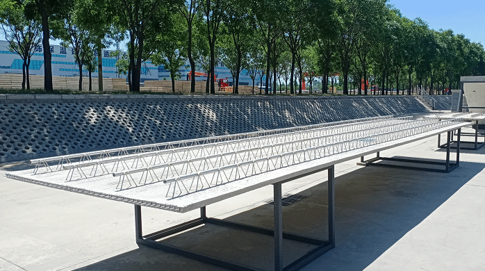 园区可生产预制混凝土柱、叠合梁、夹芯保温外墙板、楼梯、预应力混凝土叠合板等14种PC修建类构件,,,具有尺寸精度高、观感质量好、施工装置快、情形污染少等优点。。