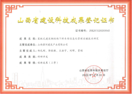 ×°ÅäʽÐÞ½¨¸Ö½á¹¹ÏÂÁϳµ¼äÐÅÏ¢»¯ÖÎÀíÒªº¦ÊÖÒÕÑо¿¿Æ¼¼Ð§¹û¹ÒºÅÖ¤Êé