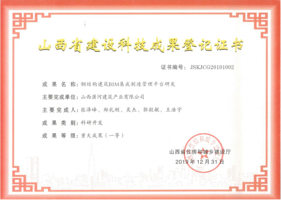 ¸Ö½á¹¹ÐÞ½¨BIM¼¯³ÉÖÆÔìÖÎÀíÆ½Ì¨Ñз¢Ð§¹û¹ÒºÅÖ¤Êé